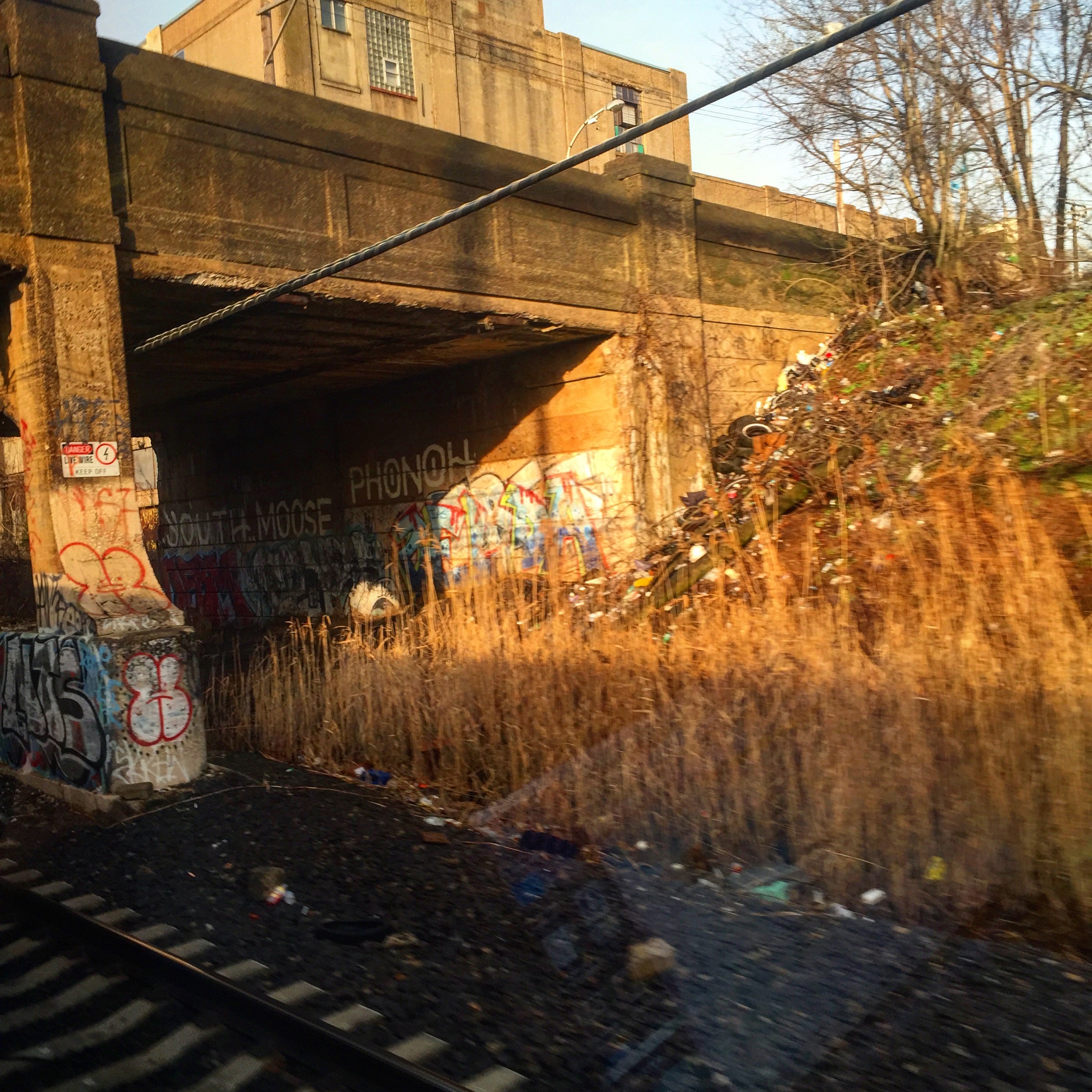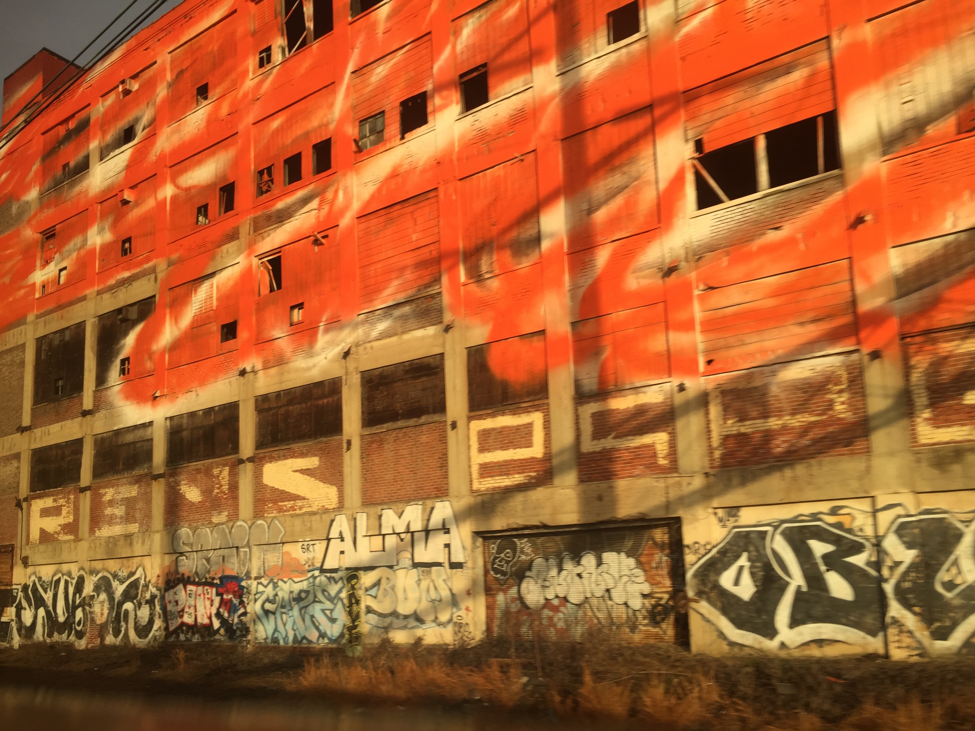 The train travel was fine. It allowed me the quiet time to sit back and view the passing landscape. I love the decayed, industrial ruins of the properties directly fronting the Northeast train track line. There is a visual clarity and honesty about these landscapes. When I got near Philadelphia, I began to see a wonderful contemporary overlap on top of the existing aged warehouses and industrial buildings. Bright pink and orange paint was sprayed on these witnesses to our past – as if to re-make them.