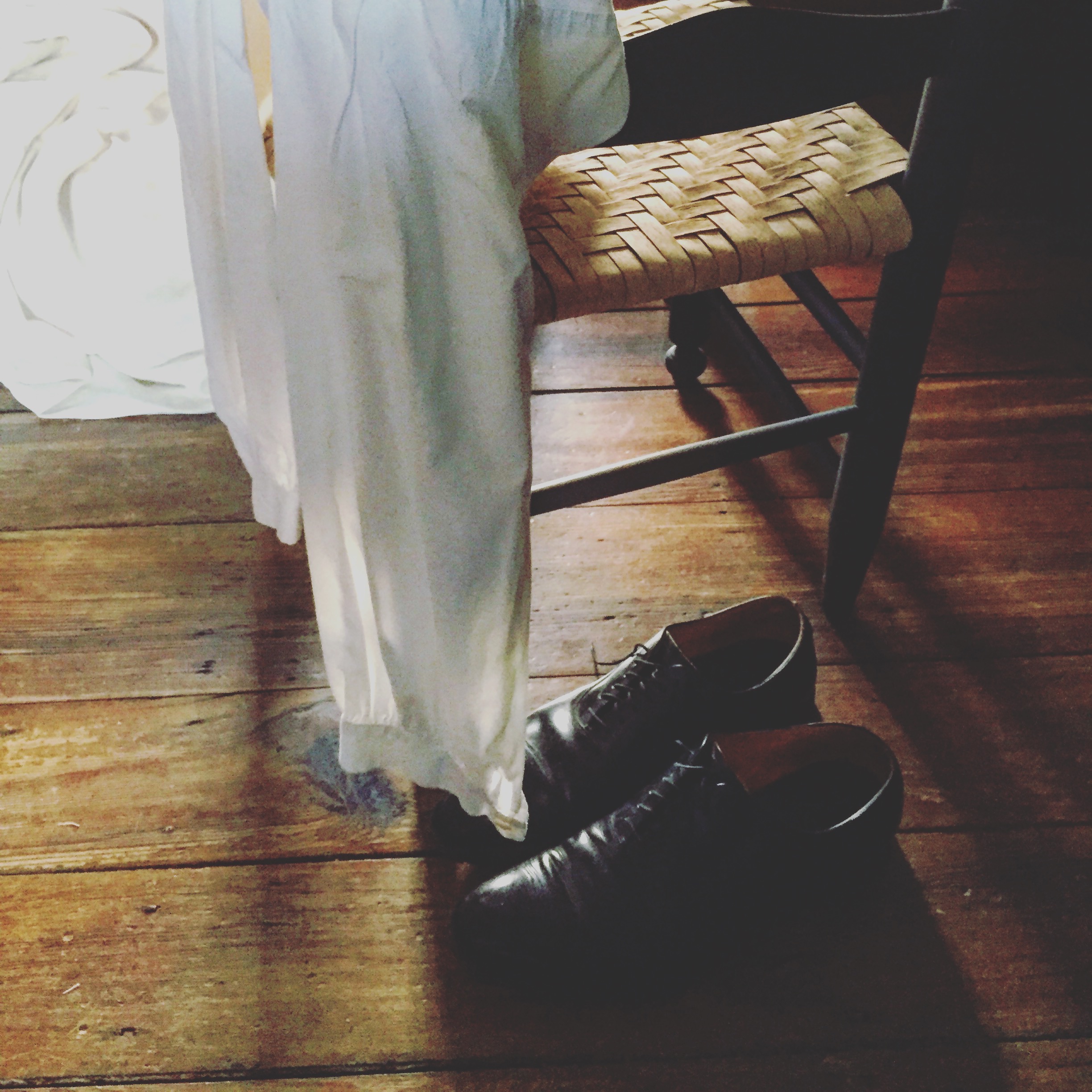I told them that it was past my bedtime. We climbed the winder stairs to the third floor. It got much darker as you stepped up. I was imagining this being the end of a very long journey and how these contorted stairs would feel like an obstacle course for the traveler’s tired feet. It was really dark in the dormer rooms. The only light came from an illuminated distant city hall steeple through one of the dormers. We were going to try and have me sleep on the rope bed, but the ropes needed re-roping, and we had too much rum punch and beer, so we just said to-hell-with-it and used the floor pads. We were tired and it was dark. We haphazardly gathered sheets and blankets and pillows from anywhere we could find them, set up the pads and got changed for sleep.