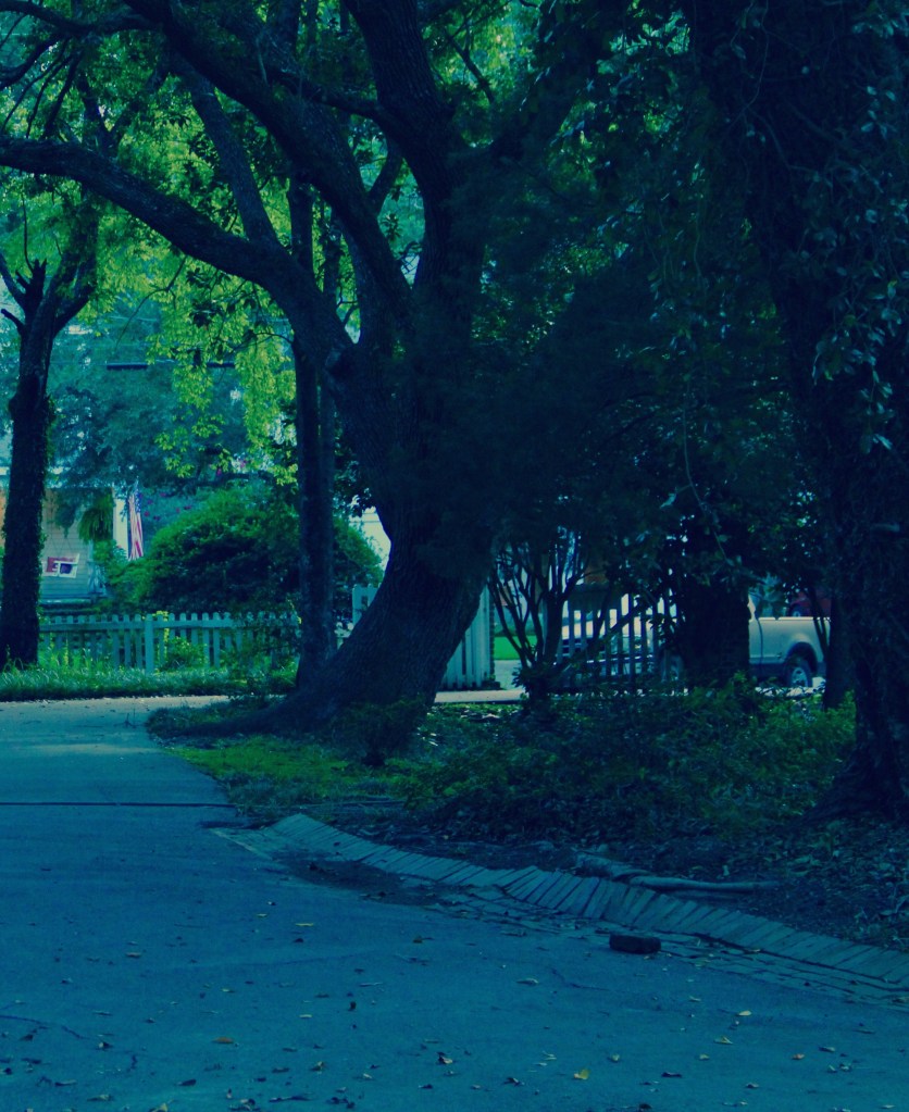 My clothes were hung in the armoire and thrown on the floor, suitcase open, with my shoes tossed by the settee.  I changed into my nightclothes, turned off the light and got in bed.   You could see the tangeled, large live oaks through the thin curtains.