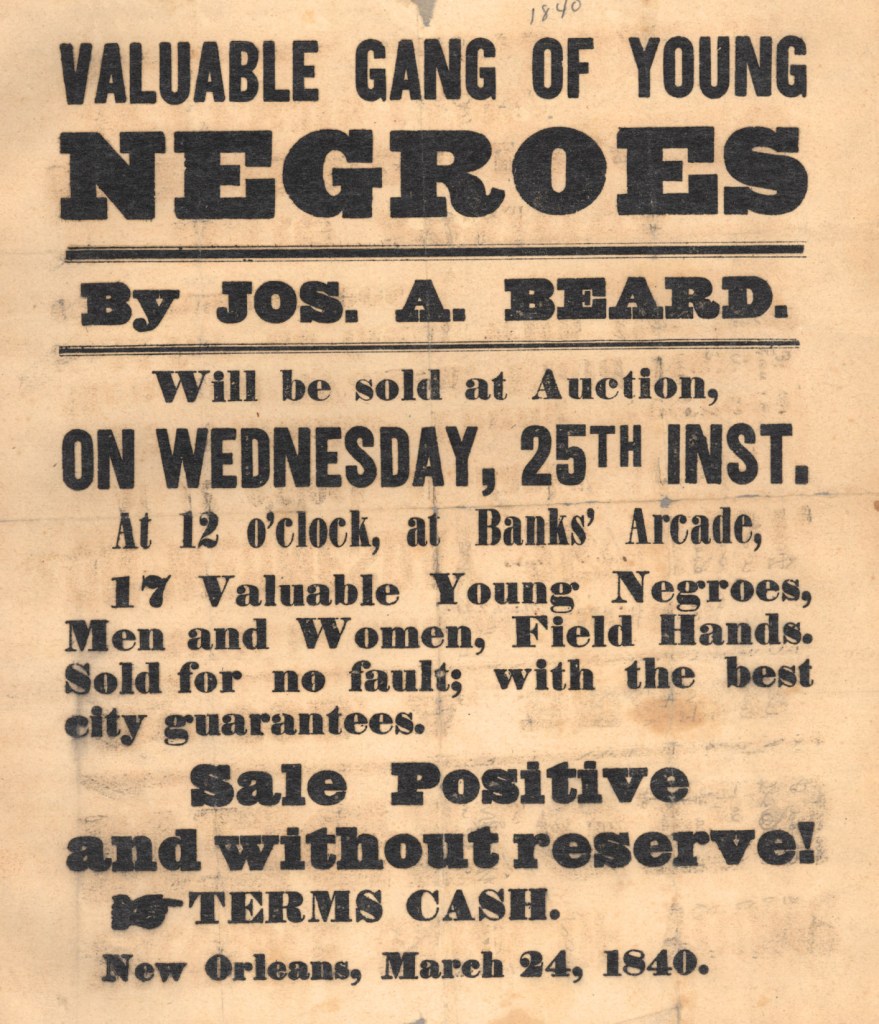 As of 1808, because of changes in American law, it became illegal to transport captive human cargo (slaves) across the Atlantic.  Because of this policy shift, the only legal trading of slave labor had to occur with slaves that already existed in the Unites States or children who were to be born under enslavement.  The details of this “domestic slave trade” have been known for some time through the work of Zora Neal Hurston and the WPA Writer’s Collective, but just now making the mainstream awareness.