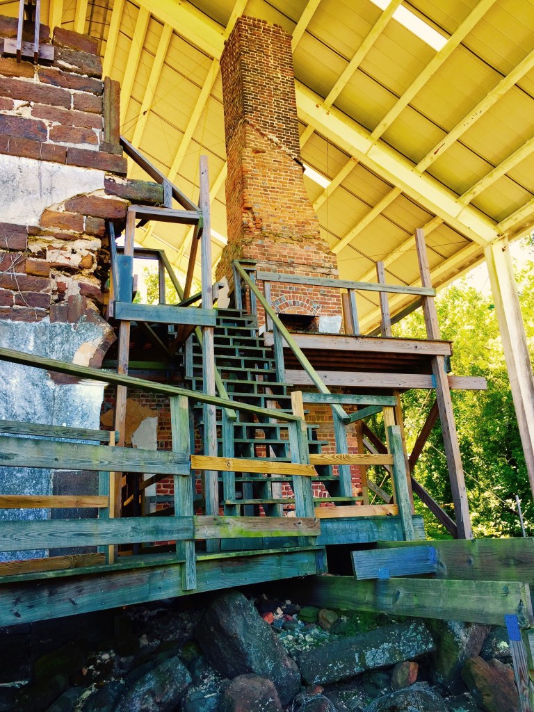 As we continued to walk through the wooded landscape, a path led up to the main house ruin. Even as a ruin, the house is a breathtaking reminder of the dominance of the plantation owners upon the land. I walked through the makeshift platforms and steep structures that provided access to the house site. You are able to experience the house as a voyeur, peeking into its innermost construction details and private structural secrets. At times, it feels too intimate and personal. Every once in a while, you could remind yourself that you were visually embracing the actual fragments, not of the architecture, but of the enslaved craftsmen who constructed the house.