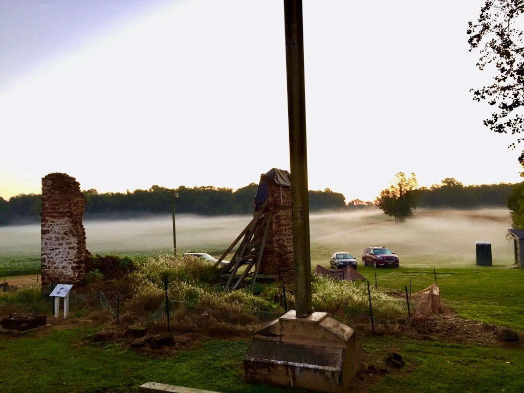 History can seem like a passing storm, heavy with clouds and obscuring the illumination of the sun, and a few minutes later the clouds pass and the sun is revealed. This weekend seemed to me to be about the passing of the fog, the rising of the sun, and the acute awareness that contained within Menokin’s ruins are the stories and fingerprints of a vast and deep history of our collective ancestral heritage. Intertwined between the white, Anglo land and slave owners and the enslaved populations is the vibrant and active narrative of life, death, bondage, freedom, decay, reconciliation and renewal. Just like the stabilization efforts to the building itself, we as historians need to gently and thoughtfully brace up what remains of the Menokin legacy and provide a platform for its viewing that brings us closer to the realities and humanity of the story.