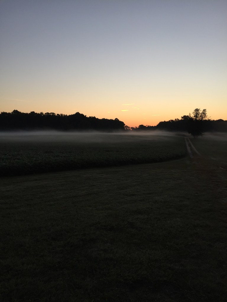 As the sun progressed with its awakening, it shifted and faceted along the house ruins, bolding the edges as if to make a statement regarding the dichotomy between the natural and made environments. I often feel that in trying to interpret history, we flatten out the stories – we make them nice and tidy and neat. If anything, the rising sun was making manifest all of the defects, rubble, and layers of the Menokin ruin in such a way as to push me to seek those messy spaces and hidden crevices of untold stories. The sun seemed to want to illuminate the darkness of the history into a rising awareness of Menokin’s social complexity. The fog now seemed to become a player in this opera as it continued to move across the land and slowly encase and then reveal features.