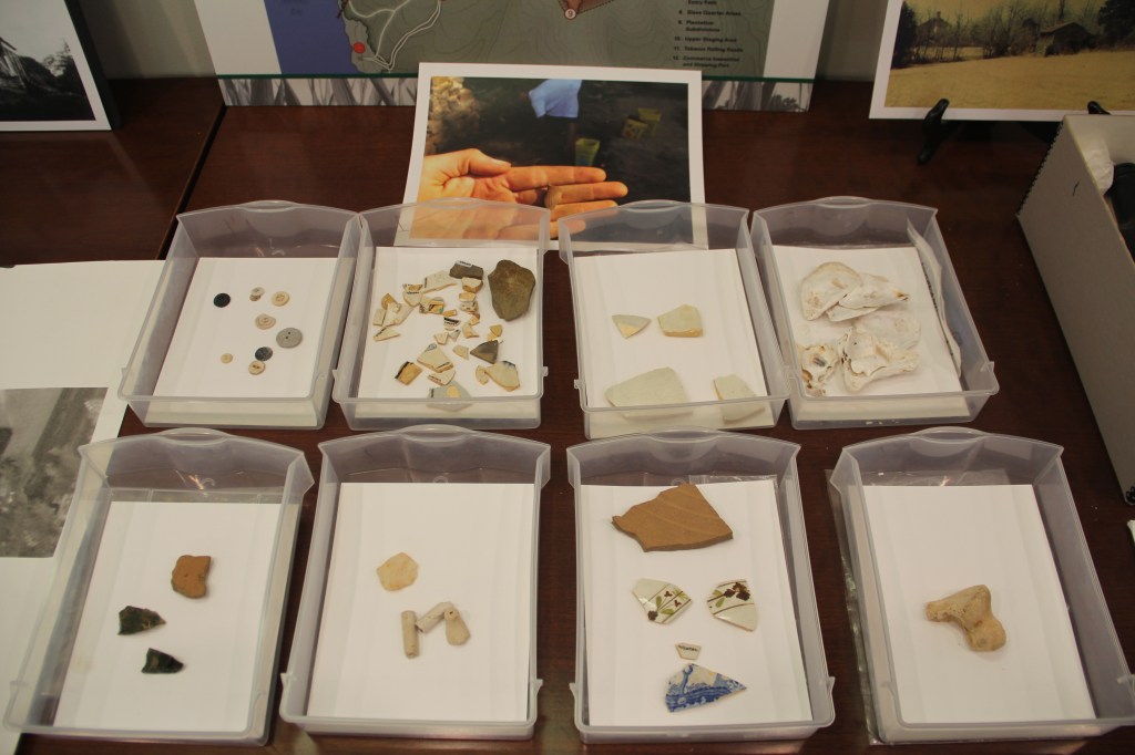 Upon our arrival back, I drove to the Menokin site and met with the staff. We concluded that we wanted to pull out some meaningful artifacts from their collection that could give a good sense of how the narrative of the Menokin enslaved was interlaced with the other, more prominent and visible stories. As is usually the case in heritage sites, there is only fragmentary evidence, and much of it has to embrace a certain level of conjecture in order for the story to be pieced together. As we searched the archives, we pulled out nails, pottery shards, decorative molding pieces that showed the handiwork of the craftsman, and other tangential objects that could enable a consistent narrative of the enslaved at Menokin.
