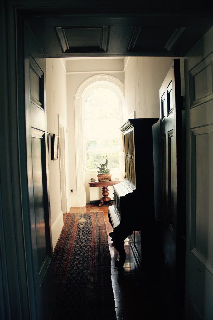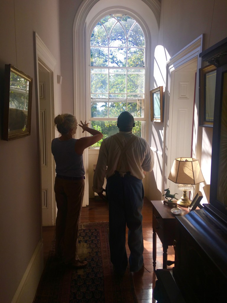 At one point, we all joined again in the main central hall and continued our conversations. I looked up and noticed Joe, standing in front of a series of family portraits in gilded frames hanging from thin lines anchored to the picture molding. The image of Joe looking up and in some way struggling to understand his place within this extraordinarily beautiful southern plantation context was startling.