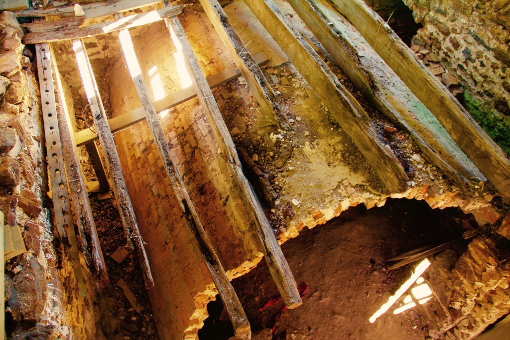 I woke up, as I usually do, just before the sunrise. My view was breathtaking, as the agricultural fields were covered in a slow-moving fog. The sun was just pushing itself above the tree line and the entire site went from silent and calm to vibrant and active. Even the ruin was animated by the sun’s rays. I was also struck by how the sun was entering the ruin’s openings that would have been glazed windows. The sun’s rays entered the destroyed room spaces and crawled along the walls. It occurred to me that this had always happened whether the house was intact, in ruins or never even existed. The built form in the landscape simply acted as the projection screen for the natural world – not the other way around.