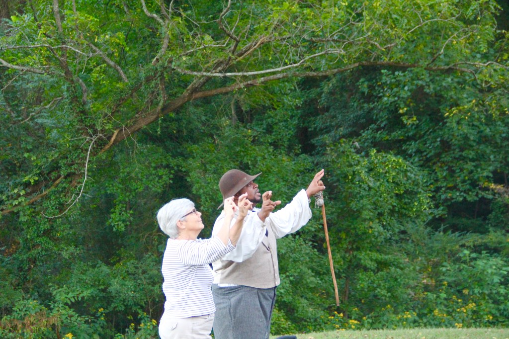After dinner, Dontavius began his iconic interpretive first-person theater presentation, “Chronicles of Adam.” In his monologue, Dontavius convincingly and movingly spoke and conversed with us as an enslaved man named Adam. It’s moments like these that I appreciate being surrounded by such talented and dedicated public historians as those joining us around the open fire. The logs burned and cracked, the crickets chirped and the sun set behind the trees.