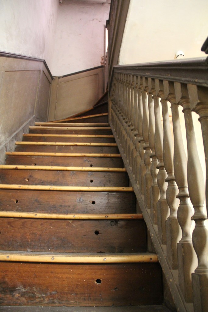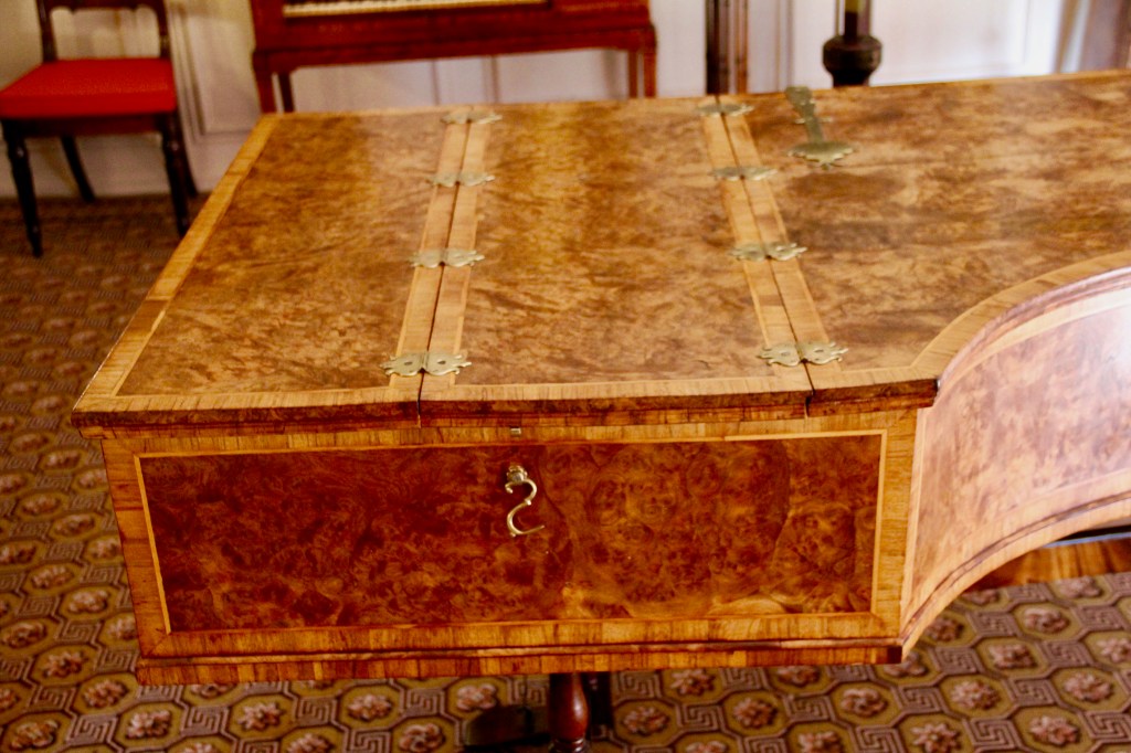 As I walked around the first floor, I entered a very clean, fully restored and orderly room.  I was about to walk out of the room as quickly as I had entered when my host pointed to a typical door and suggested that I open it.  I did.  I stood there a bit confused because the door opened up onto a brick wall.  I am used to fake doors in this period building as a way to achieve symmetry, so I suspected that was what I was looking at.  I was told that the brick wall covered up an opening that led to a wing of the palace built to house the ill King and his doctors and servants.  Attempting to keep the King’s illness away from the public, an entire wing of the palace was built and kept private.