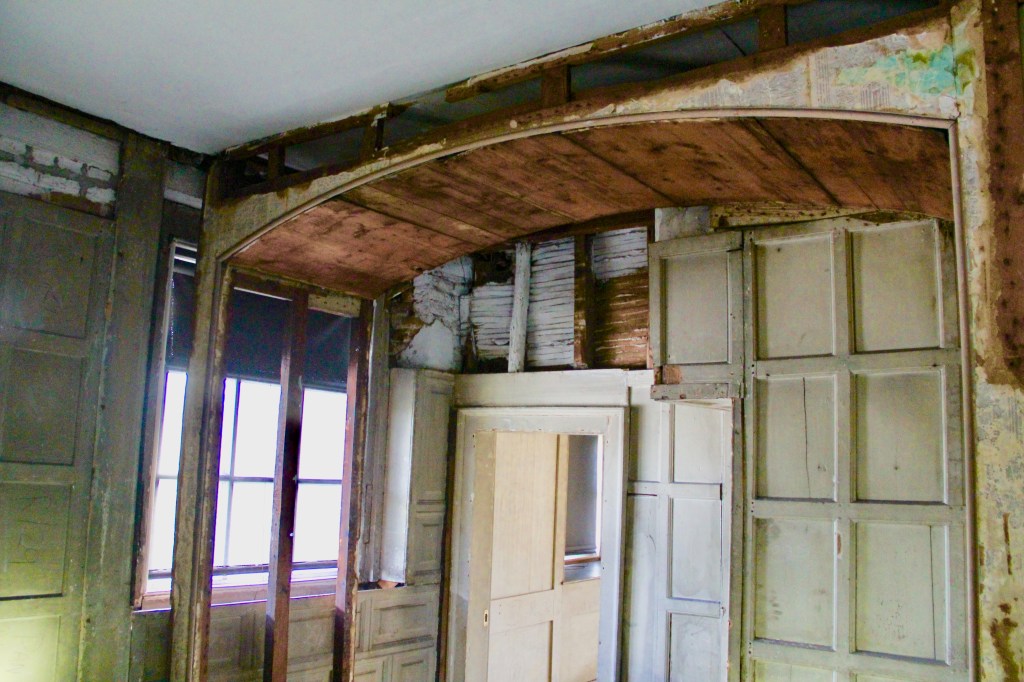 My contemplation was detoured by my welcoming hosts, Rachel Mackay, Kew Palace Manager and Karren Harris, Preventative Conservation Supervisor, who escorted me up three floors to the raw spaced attic.   As we walked from the beautiful public rooms, up the stairs, through semi-restored rooms, down long darkish hallways and up still more stairs, I felt like the gloss of social media images slowly gave way to a more real and structural back story.  Nothing seemed straight forward or direct; it all seemed oddly contorted and one step removed from the highly ordered gardens I could see outside of the passing windows.  I started to feel a definite disconnect between the regimented landscape gardens and the inner guts of the palace.