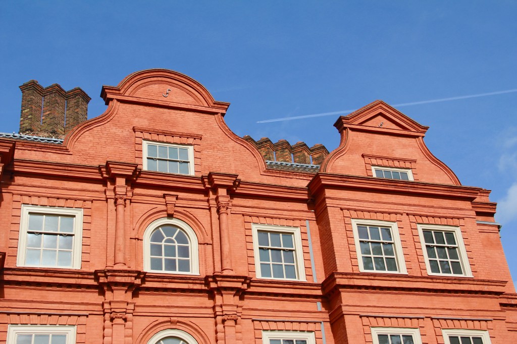 The Queen and family lived in the primary portion of the palace while the king was kept – as mentioned before, sometimes in a straitjacket – on the other side of the now-bricked-over door opening.  I was told that later, after the King’s death, Queen Victoria tore down the entire wing of the palace and bricked over the door opening, leaving no trace of the King’s extended struggle with mental instability.  Gone.  Just like that.  I became interested in this lost narrative and researched Kew Palace as it existed with the wing still attached to the main structure.  As I learned more, I went back to my photographs and started to see where there were architectural hints of the previously existing structure.