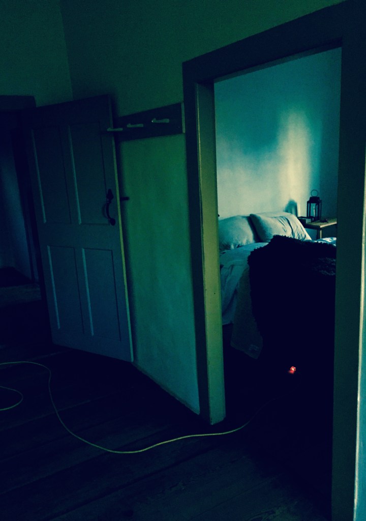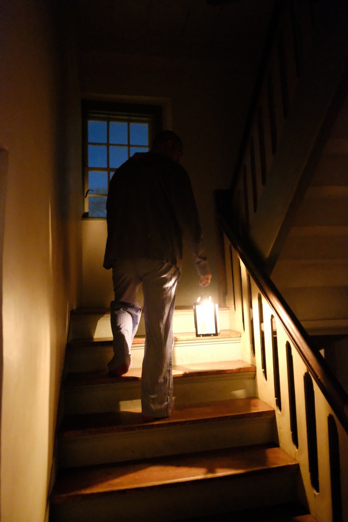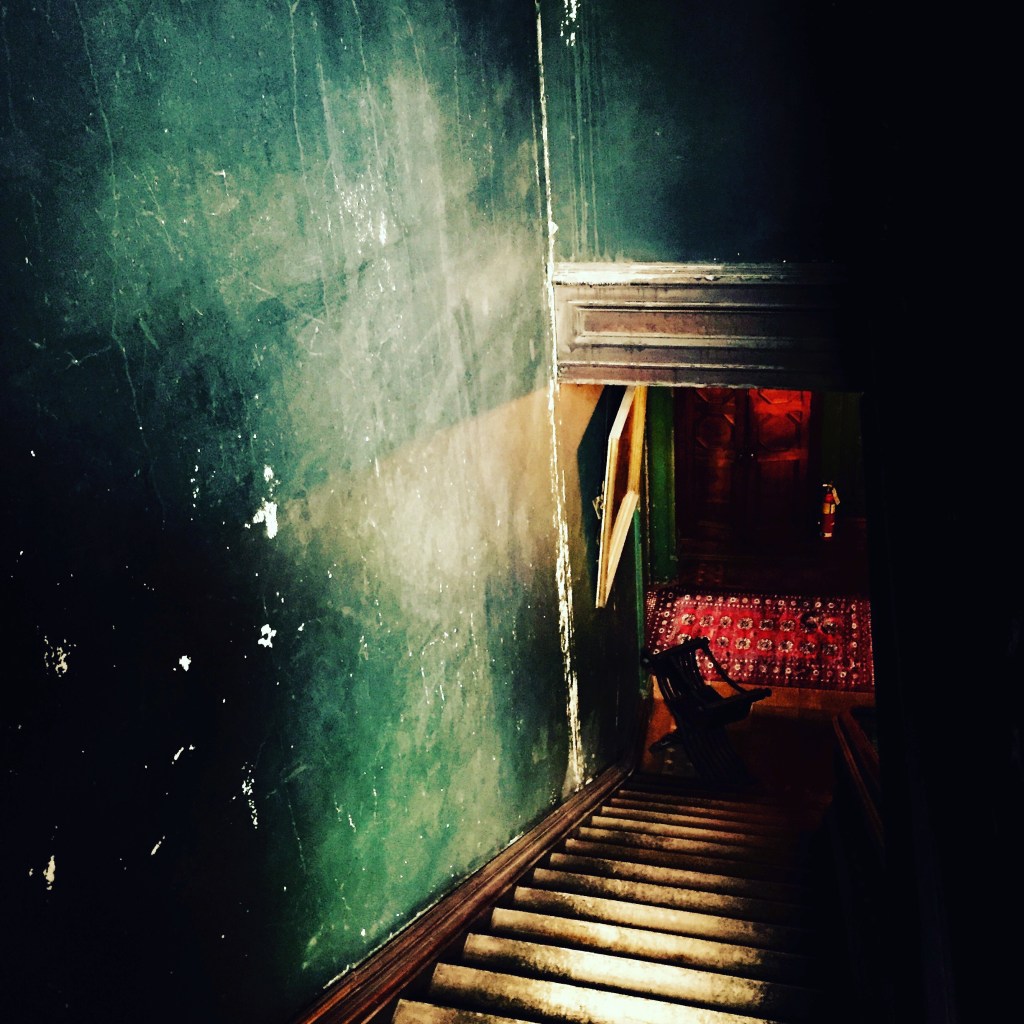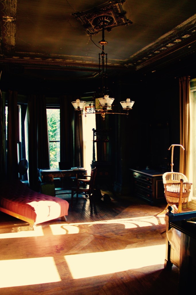Our exploration ended up in the back-mudroom of the main house. We wanted to get settled in our room before the sunset so we headed into the formal stair hall and upstairs to our bedroom. I stopped along the way to peek inside of each room. The sun was very bright outside, but inside was dramatically dark and contained. I could imagine in the heat of the summer the dark house would be very welcomed and cool respite.