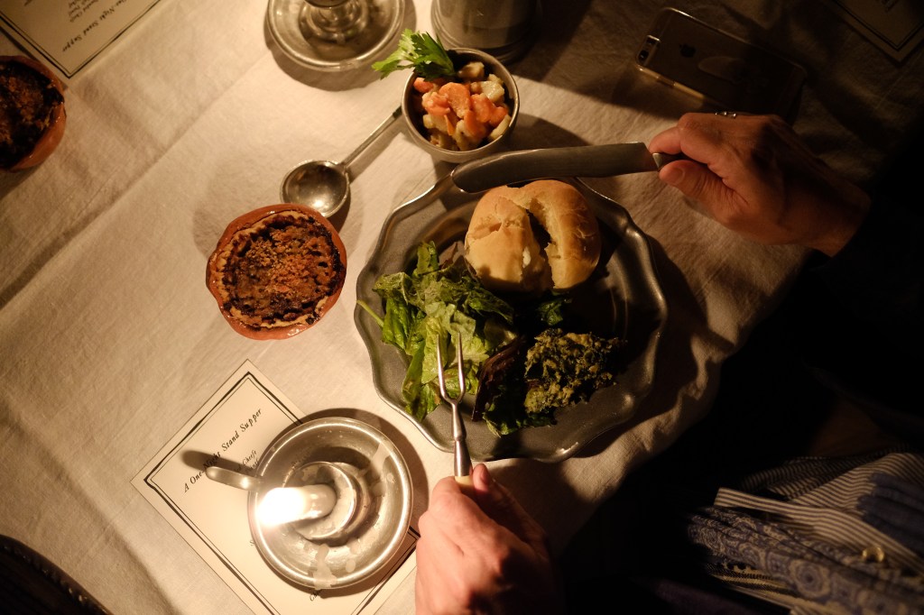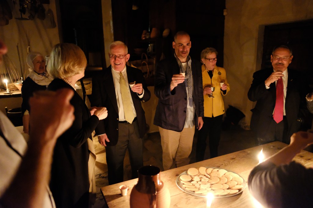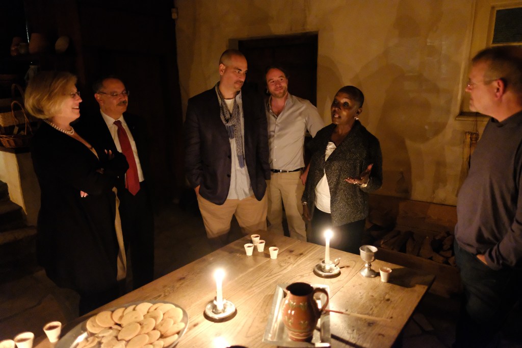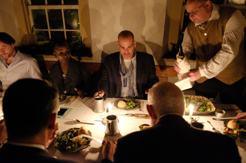 My guests for the dinner included stakeholders from all over Winston-Salem. My request had been that our dinner table represent the community that surrounds the historic site. We had elected officials, an artist/maker, a gentleman who gave the keynote speech for Old Salem’s 2015 Naturalization Ceremony, the Director of the Old Salem African-American Programs, and various board and staff members. As we gathered on the porch of the Tavern, a group of musicians, led by Scott Carpenter, began to play welcoming music.