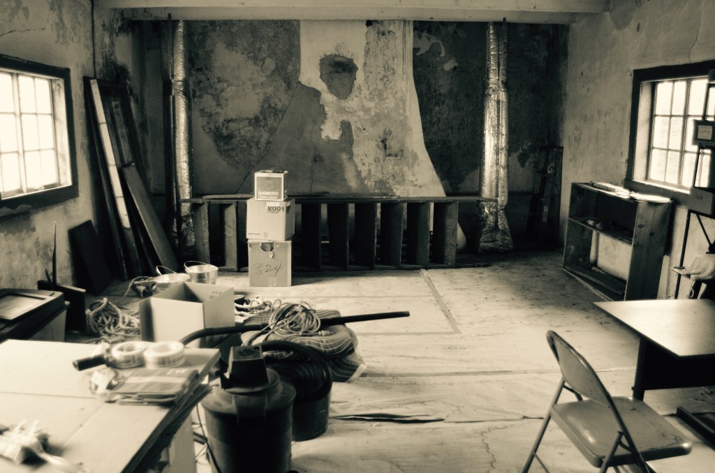 As I stepped closer to Wharton’s colorful, cubist, expressionist jewelry box–it looked beautiful, yet clearly used. The compositions were at the same time powerful, yet harsh, and discordant. The house wasn’t painted, it occupied Color, and as an area was used, the top color was eroded away and a lower color revealed itself. This wasn’t by accident – it appeared fully intentional. I immediately thought of Rudolph Steiner’s paintings and of his philosophy of how color, painting, and the arts could affect society as a whole. He believed in the healing qualities of color, the nature of this color “therapy” being to stimulate different emotional responses for each individual. Most discuss the studio as “colorful” and “playful”. I, however, see it as a search for direction – an acknowledgment of our lives as foggy, beautiful, and at times confusing.