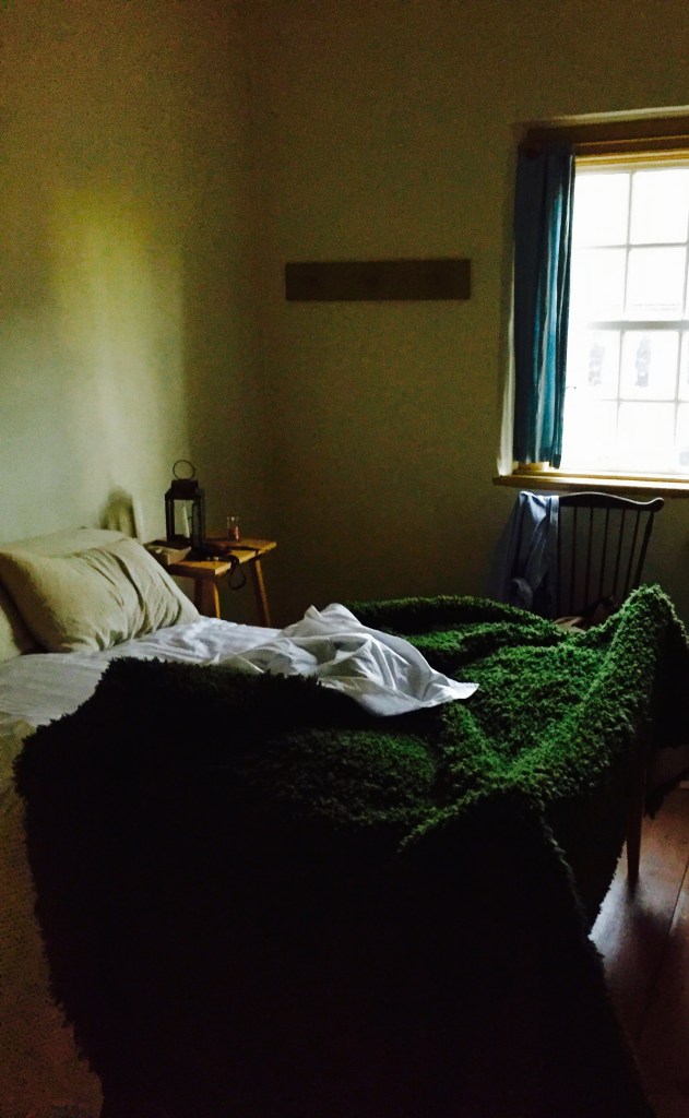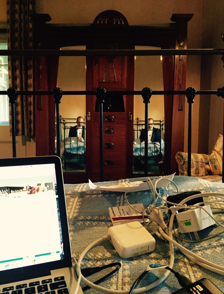 Walking up the grand staircase, I witnessed the second -floor hallway spaces blossom into a centralized open space, oozing out to large porches with deep overhangs. The bedrooms spiraled around this ample open space and each bedroom came equipped with its own sleeping porch area. The interior didn’t seem overly scrubbed by preservationists or overly curated. The spaces had a very lovely worn feel about them. We made it to our bedroom, dropped our bags, and I set up my computer.