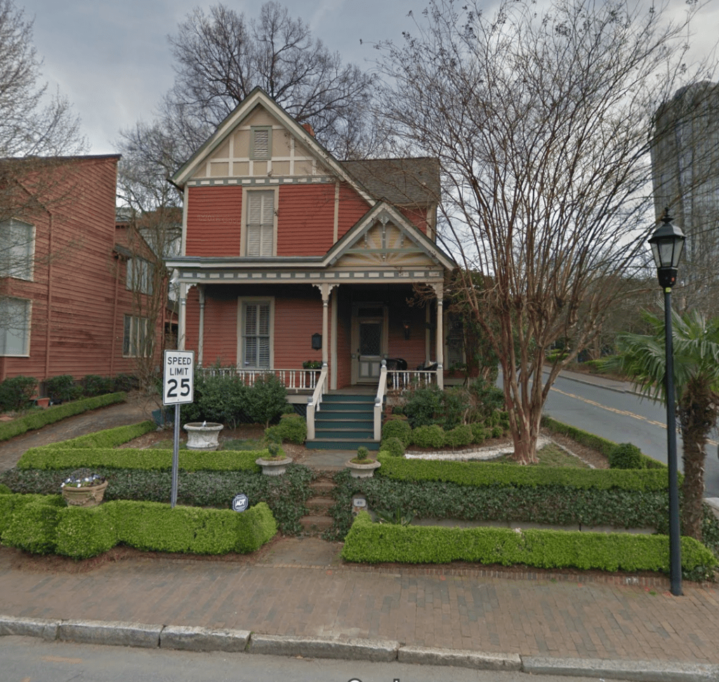 Everything on the street had a similar scale and was densely landscaped. After a moment, I located the Iron Houses hidden behind a large tree and densely landscaped front yard, all tucked behind a tidy white picket fence. I was struck by the feeling that it felt in scale and presence almost exactly like our first tiny home in Charlotte. I wondered if it was simply natural, when existing in a tiny house, to expand its presence and livability by integrating well-formed landscape “rooms” into the very structure of the home?