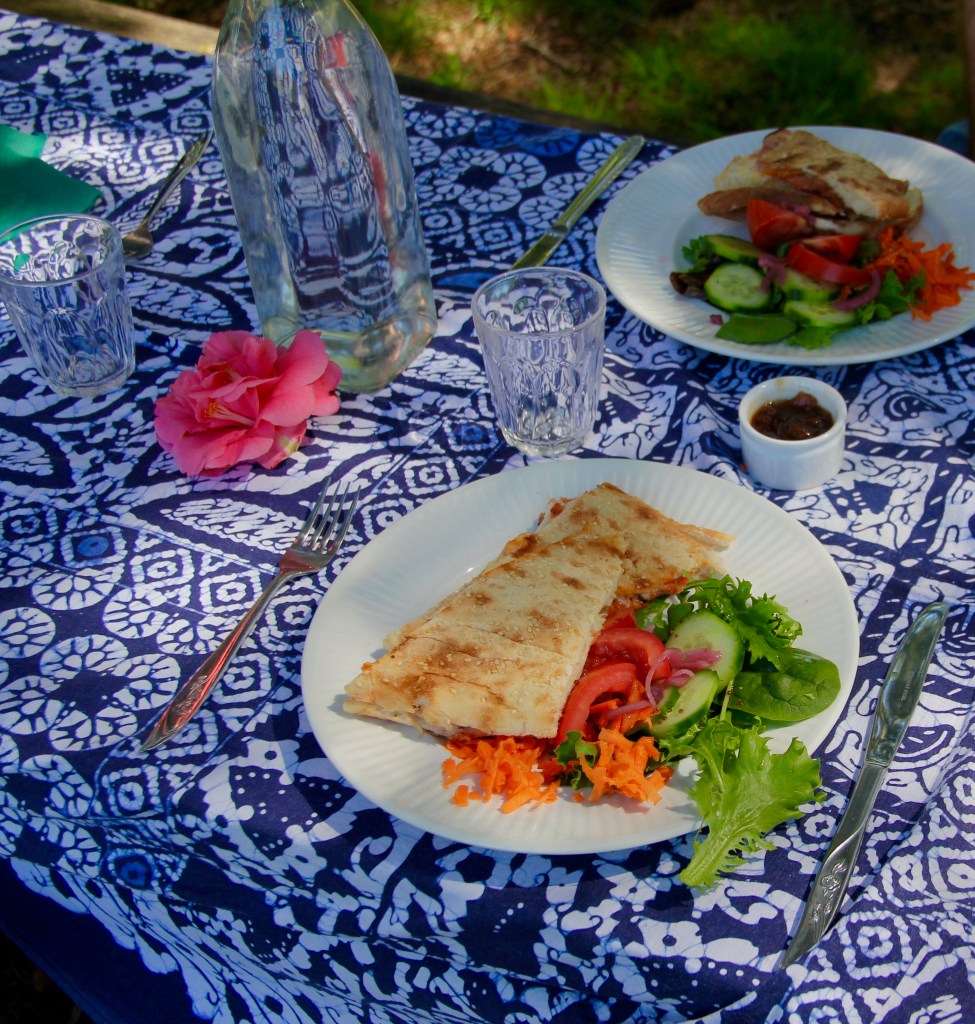 Almost immediately our host escorted us to a side garden where he told us to sit while he prepared our lunch. We offered to help him, but he insisted that we rest quietly and experience the garden. As we sat, we looked around and took notice of all of the delicate still life scenarios that surrounded us. It felt like a theater set orchestrated for just our moment in the garden. The food seemed a direct descendant of those populating the garden. The greens and colors of the salads spoke the same language of the garden plants.
