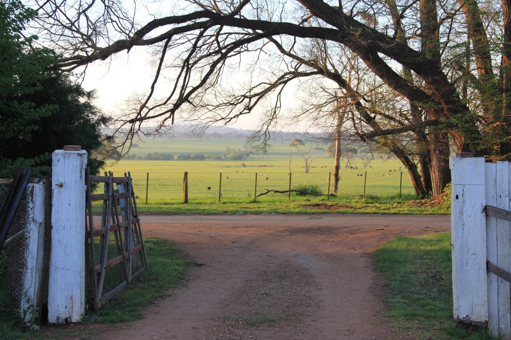 Moments later ensconced in a car with a local driver behind the wheel, we rode a bit into the open vista of this agricultural region of Australia. Unexpectedly we turned onto a dirt road, and I was told that this was the homestead’s driveway. I kept waiting for the house to come into view. I waited. Waited some more. I finally took out my smartphone and started to film the drive. To say this place was remotely situated is an understatement. Eventually, we entered another gate and the house rested in front of us. Not jaw-dropping imposing, but beautiful. The car stopped, and we got out.