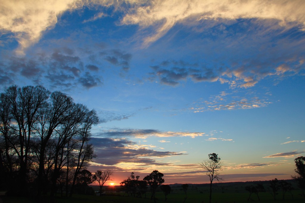 My attention to the interior of the house was seriously re-directed by the setting sun. I felt like the sky was making another plea for attention. I ran out of the house, into the tree-lined, entrance drive courtyard, and out onto one of the fenced in pastures. I stood there for a few minutes, once again trying to grasp what I was seeing. The sunset and the landscape were so astoundingly picturesque that I consciously distrusted my eyes. I squinted and looked again. Nope, not #FakeNews. This was the real deal. The vast Australian landscape that I had been told about was right in front of me.