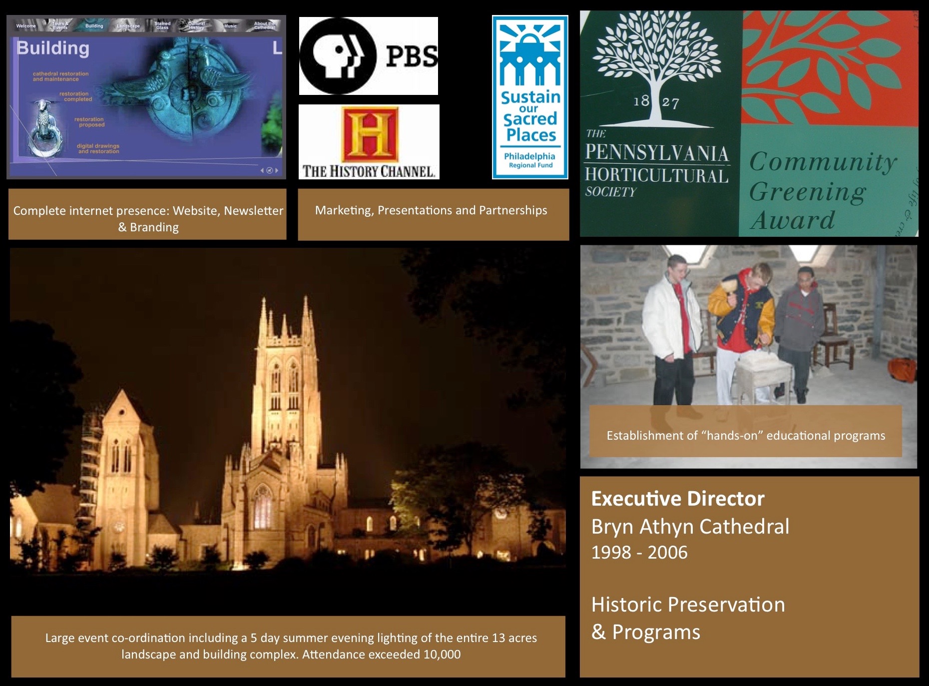 Facilitated a complex-wide stained glass window assessment project which provided the guidance for a long-term window maintenance program. J. Kline – Stained Glass Curator.Coordinated and implemented an annual, community-based, evening festival that attracted over 10,000 visitors in five days. The festival included illumination of both the interior and exterior of the complex, a visitor welcome center, a community services fair, and an extensive volunteer docent interpretive program.Care and maintenance for an historic, naturalized cemetery. Completed a comprehensive ground penetrating radar and digitalization of the grounds successfully locating lost historic elements.
